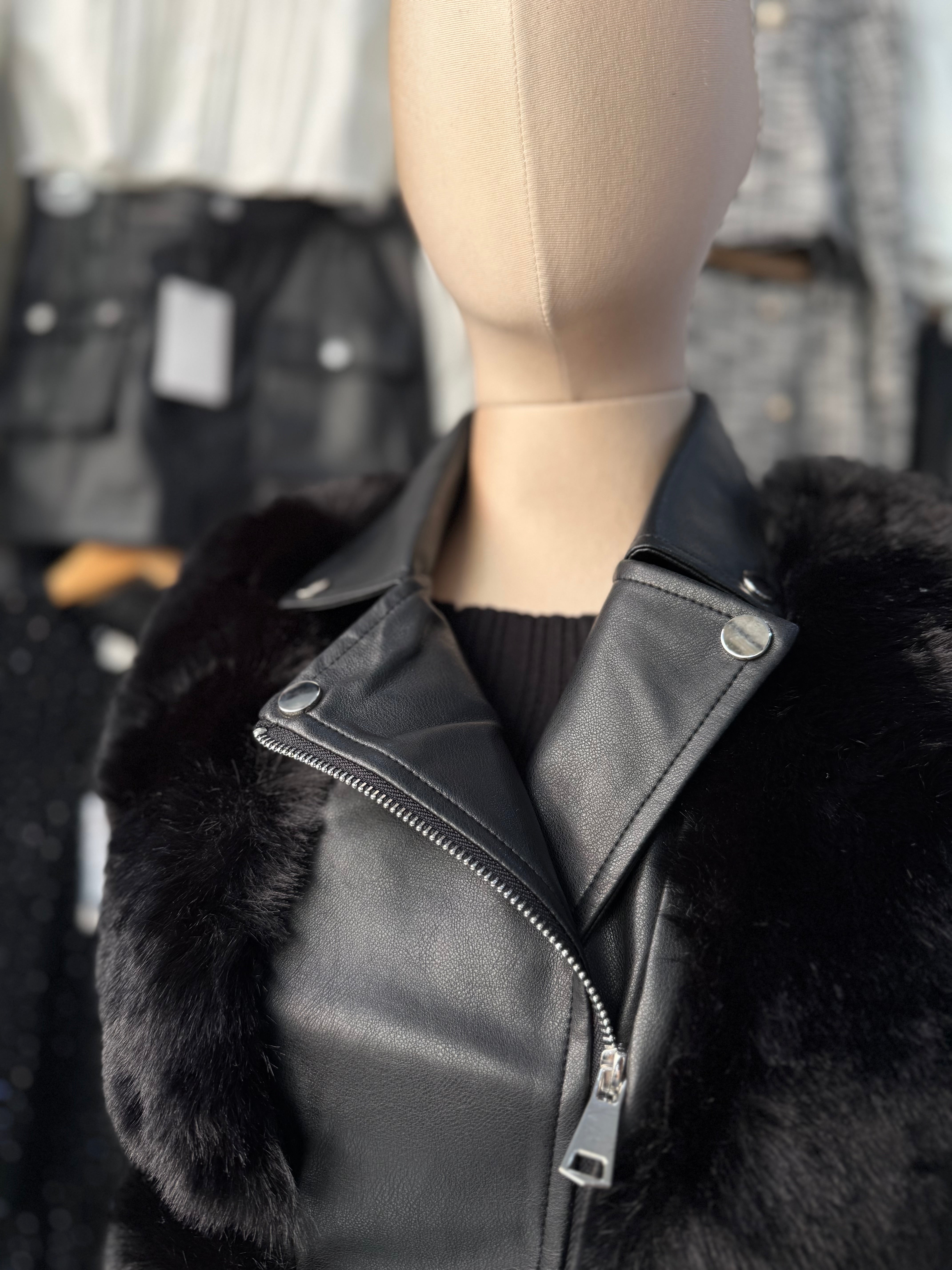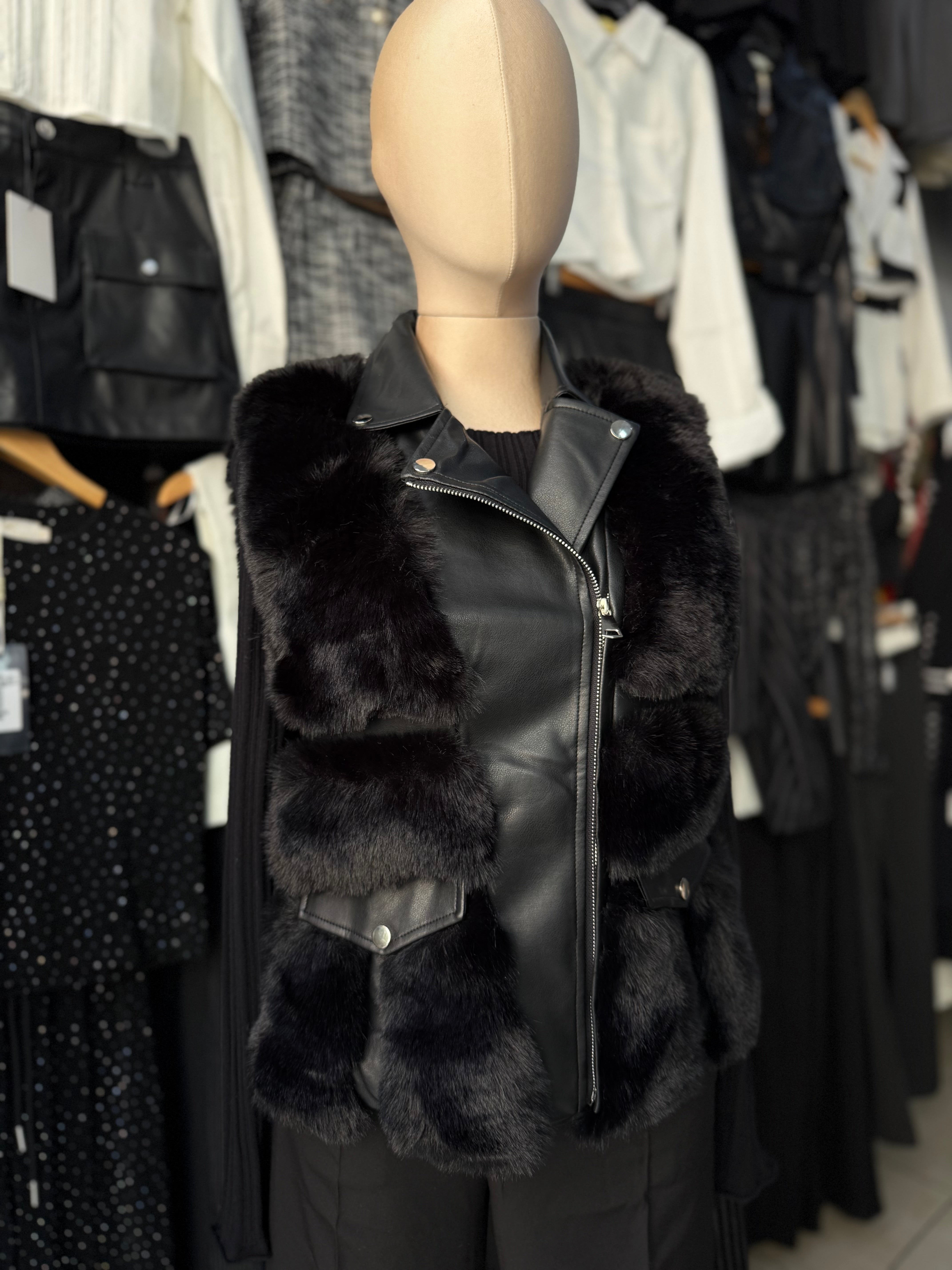CHALECO CON DETALLE DE VINIPIEL Y PELUCHE